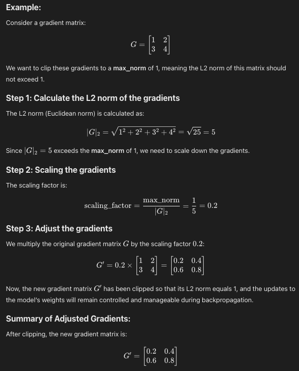 梯度裁剪是一种用于增强大型神经网络训练稳定性的技术,通过设置梯度幅度的最大阈值来实现。当梯度超过这个预定义的max_norm时,它们会按比例缩小,以确保对模型参数的更新保持在可管理的范围内,防止出现梯度爆炸等问题,并确保更可控和稳定的训练。