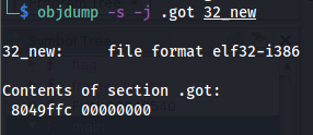 使用以下命令获取 GOT 表的地址:objdump -s -j .got ./exec
