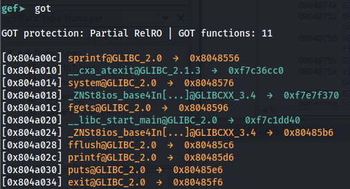使用 GEF,您可以 开始 一个 调试 会话并执行 got 以查看 GOT 表: