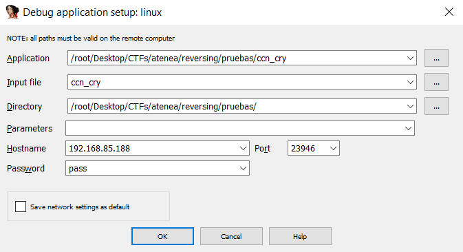 gdbserver --multi 0.0.0.0:23947 (在 IDA 中,您必须填写 Linux 机器上可执行文件的绝对路径,在 Windows 机器上也是如此)