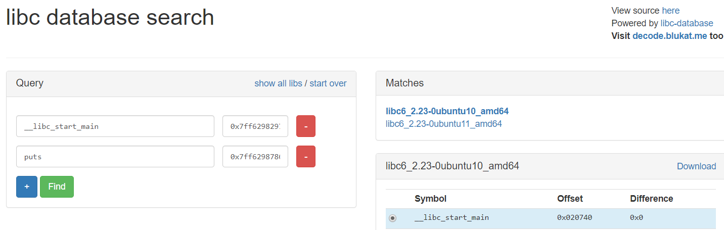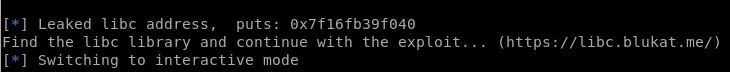 通过这种方式,我们已经欺骗了 puts 函数,使其打印出内存中puts函数的地址(该函数位于libc库中)。现在我们有了这个地址,我们可以搜索正在使用的 libc 版本。