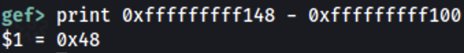 然后: 0xfffffffff148 - 0xfffffffff100 = 0x48 = 72