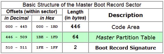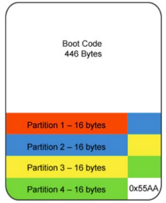 它分配在引导代码后的第一个扇区的446B。这个扇区对于指示PC应该从哪里挂载分区至关重要。