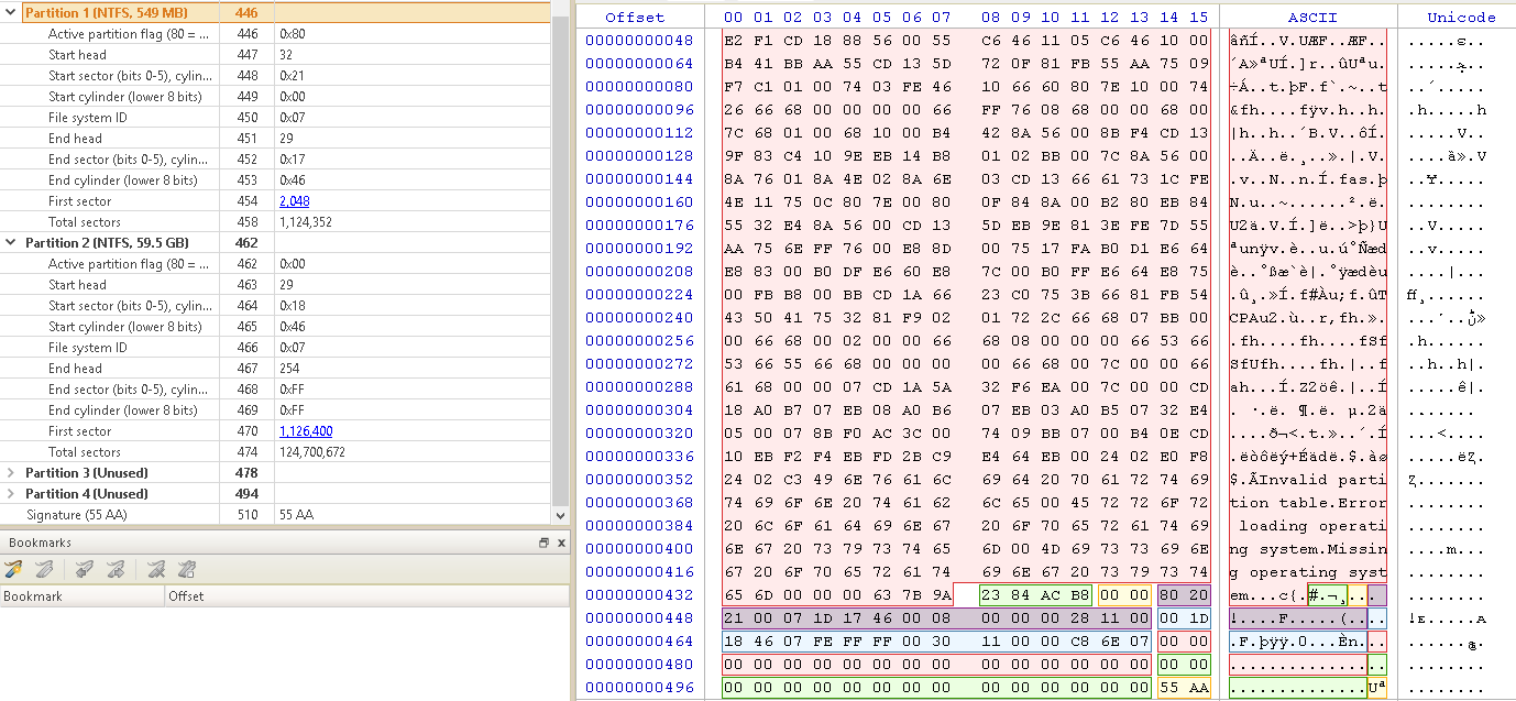 它最多允许4个分区(最多只有1个可以是活动的/可引导的)。但是,如果需要更多分区,可以使用扩展分区。这个第一个扇区的最后一个字节是引导记录签名0x55AA。只能标记一个分区为活动。