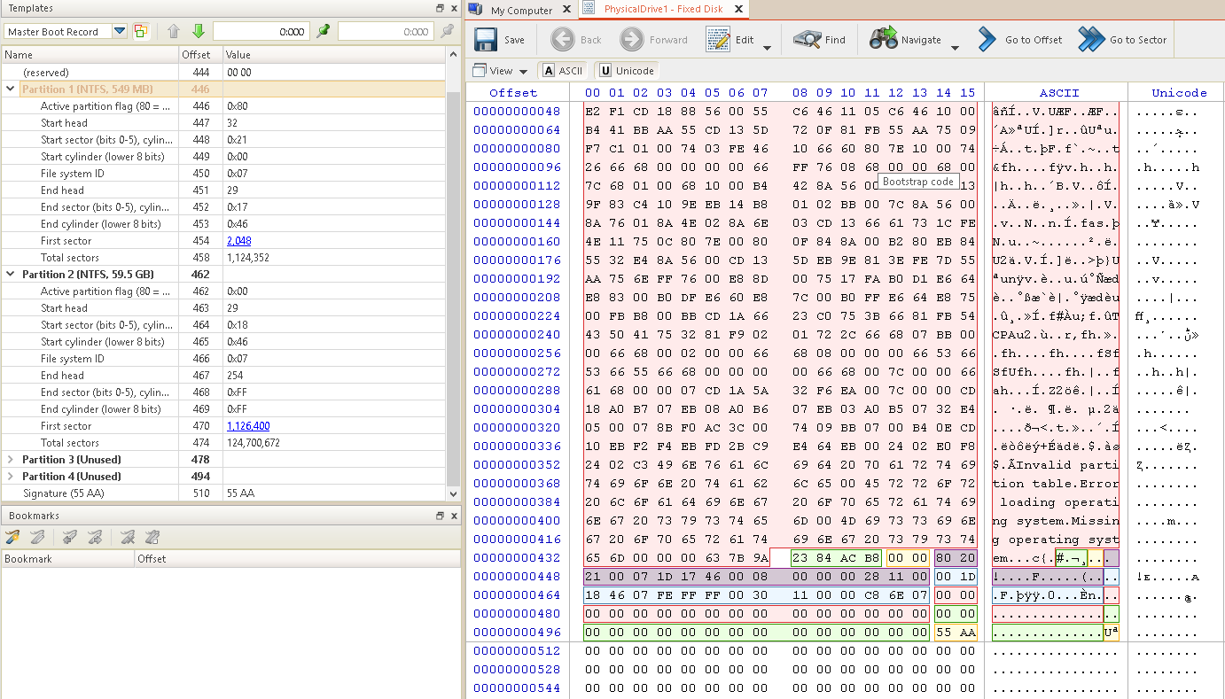 从MBR的440到443字节可以找到Windows磁盘签名(如果使用Windows)。硬盘的逻辑驱动器字母取决于Windows磁盘签名。更改此签名可能会导致Windows无法启动(工具:Active Disk Editor)。