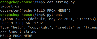 imp.load_source("os","/usr/lib/python3.8/os.py").system("ls")
