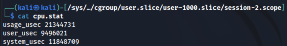 监控 cgroup 内的 CPU 使用情况 可以通过 cpu.stat 文件实现,该文件显示总的 CPU 时间消耗,有助于跟踪服务的子进程的使用情况:
