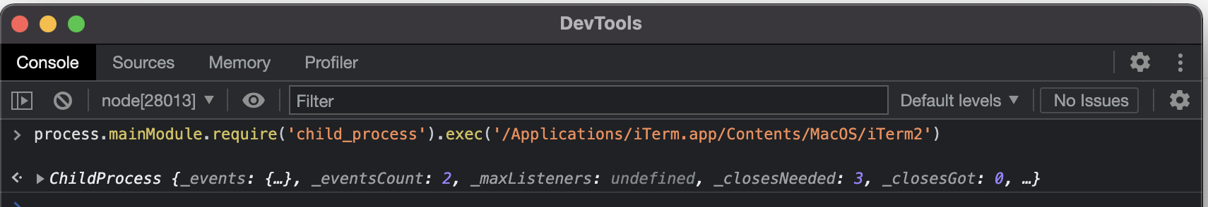 debug> exec("process.mainModule.require('child_process').exec('/Applications/iTerm.app/Contents/MacOS/iTerm2')")
