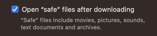 当在 Safari 中下载文件时,如果是“安全”文件,它将 自动打开。例如,如果您 下载一个 zip 文件,它将自动解压缩: