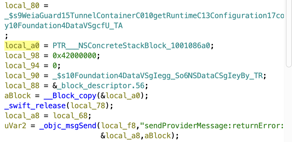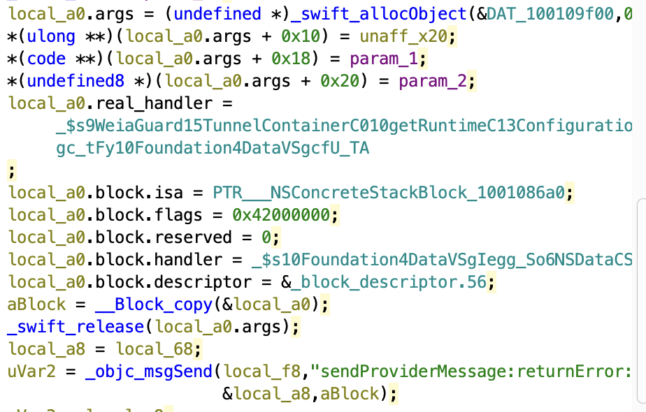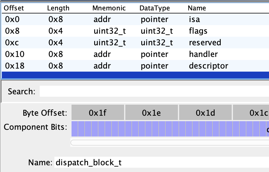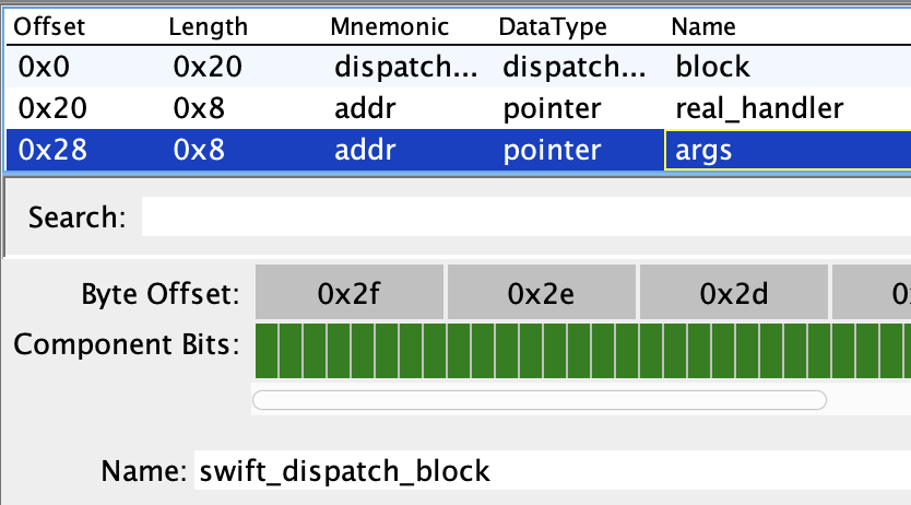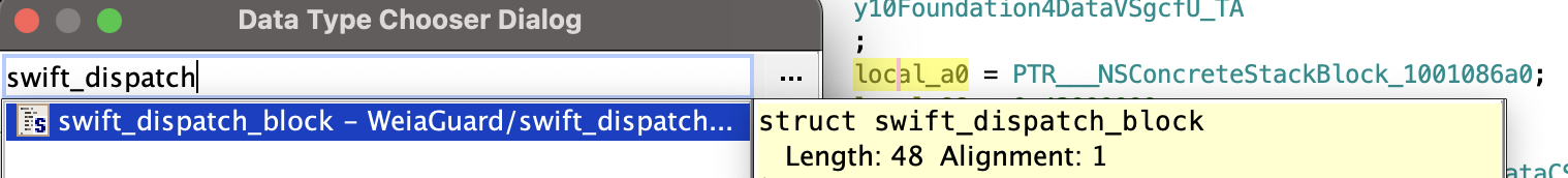 目前 Ghidra 既不理解 ObjectiveC dispatch_block_t 结构,也不理解 swift_dispatch_block 结构。