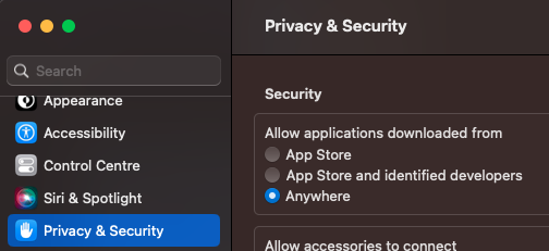 #You can also allow nee identifies to execute code using the binary "spctl"