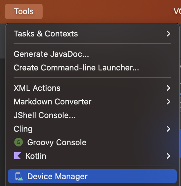 如果您安装了 Android Studio,您可以直接打开主项目视图并访问:工具 --> AVD 管理器。