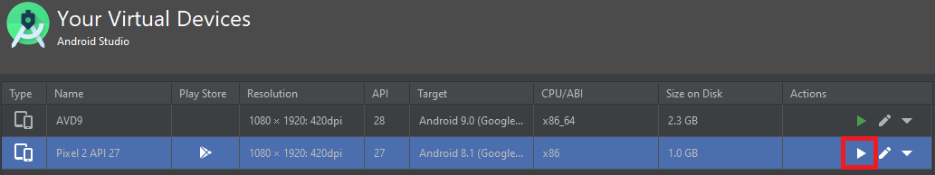 虚拟机将被创建。现在 每次您访问 AVD 管理器时,它都会存在。