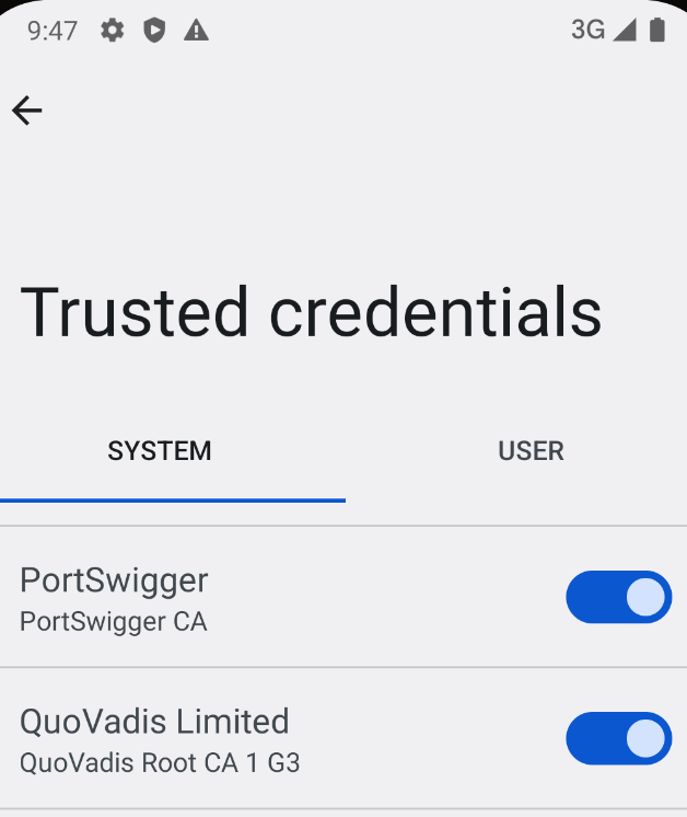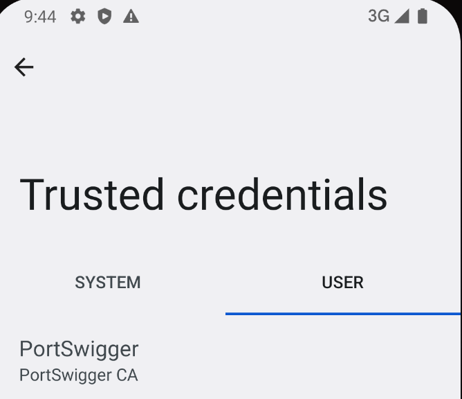 Trusted credentials->SYSTEM,检查 Postswigger 证书是否存在