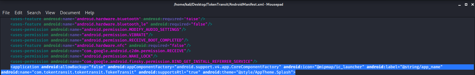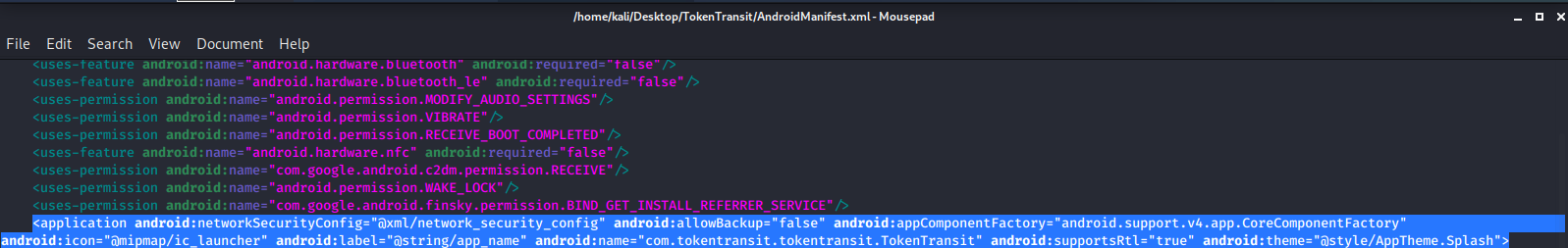 然后我们进入 Manifest.xml 文件,向下滚动到 <\application android> 标签,如果没有以下行,我们将添加它: