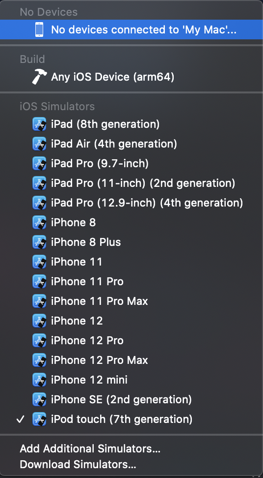 Apple 用于创建/调试/插桩 iOS 应用的事实标准工具是 Xcode。它可以用于下载其他组件,例如 模拟器 和不同的 SDK 版本,以构建和 测试 你的应用。