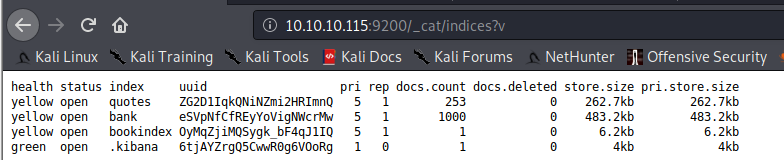 您可以通过访问 http://10.10.10.115:9200/_cat/indices?v 收集所有索引。