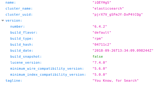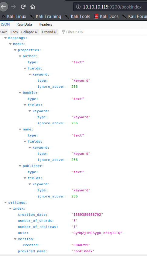 用于访问 Elasticsearch 的协议是 HTTP。当您通过 HTTP 访问时,您会发现一些有趣的信息: http://10.10.10.115:9200/