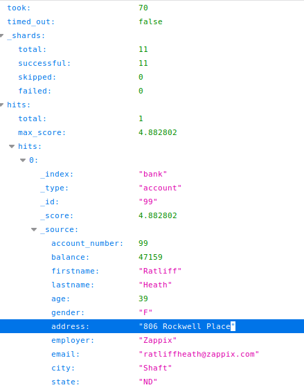 花点时间比较银行索引中每个文档(条目)的内容以及我们在上一节中看到的该索引的字段。