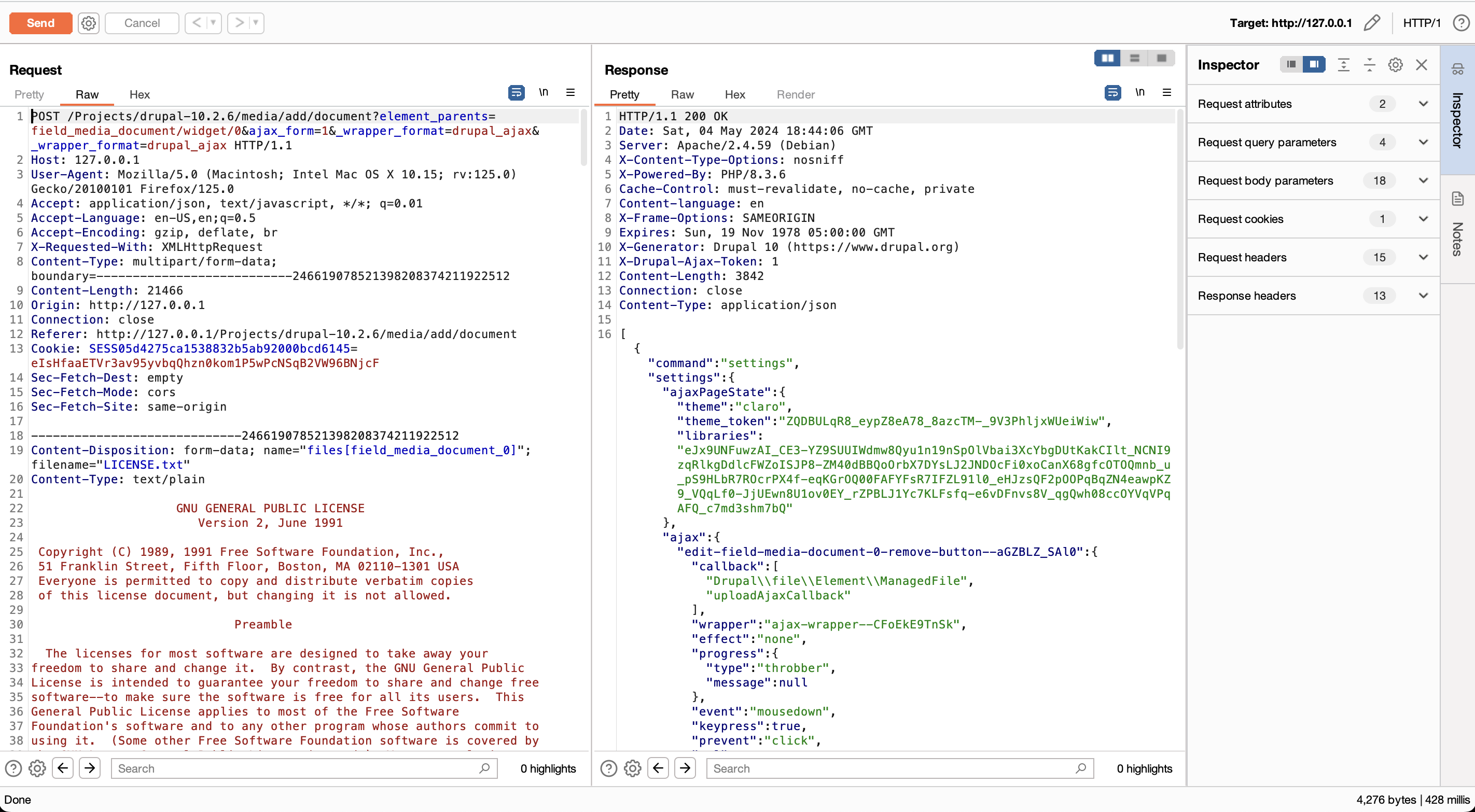 然后,我们再次利用 Add Document (/media/add/document) 功能上传隐藏在许可证文件中的 Webshell。