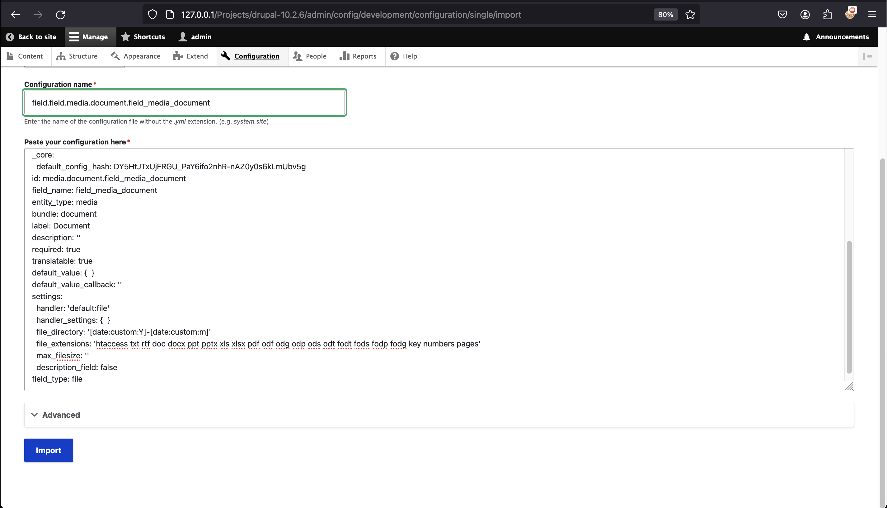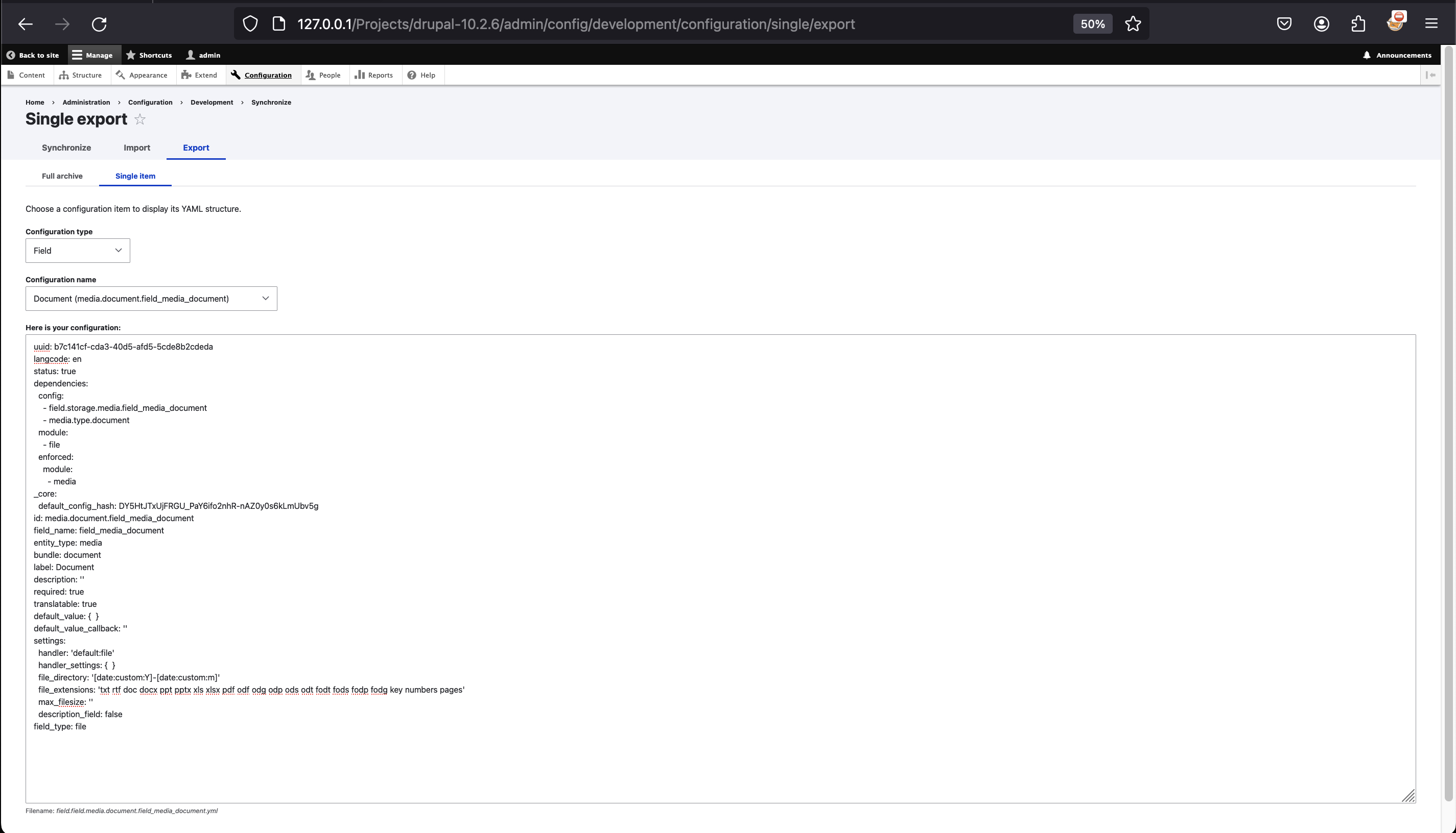 我们将利用 Configuration synchronization 功能来转储(导出)和上传(导入)Drupal 配置条目: