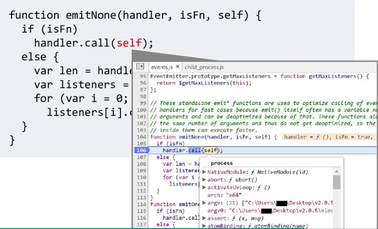 由于handler.call将接收process对象,我们可以覆盖它以执行任意代码: