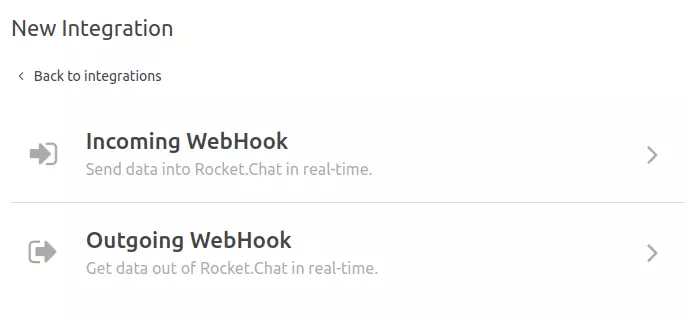 Integrations,选择New Integration,并选择任意一个:Incoming WebHook或Outgoing WebHook。 /admin/integrations/incoming