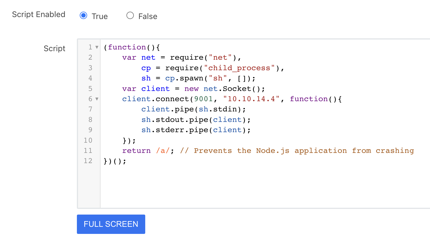 - 根据 docs,两者都使用 ES2015 / ECMAScript 6 (基本上是 JavaScript) 来处理数据。所以让我们获取一个 rev shell for javascript,例如: