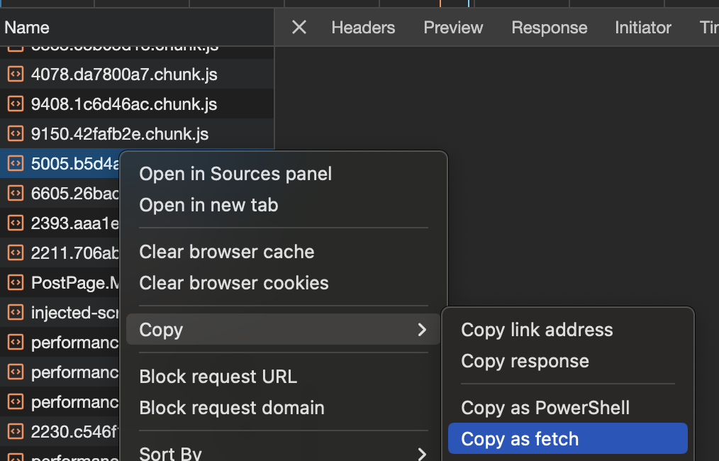 您可以在 Burp 中捕获请求并检查 CSRF 保护,您可以从浏览器中点击 复制为 fetch 并检查请求: