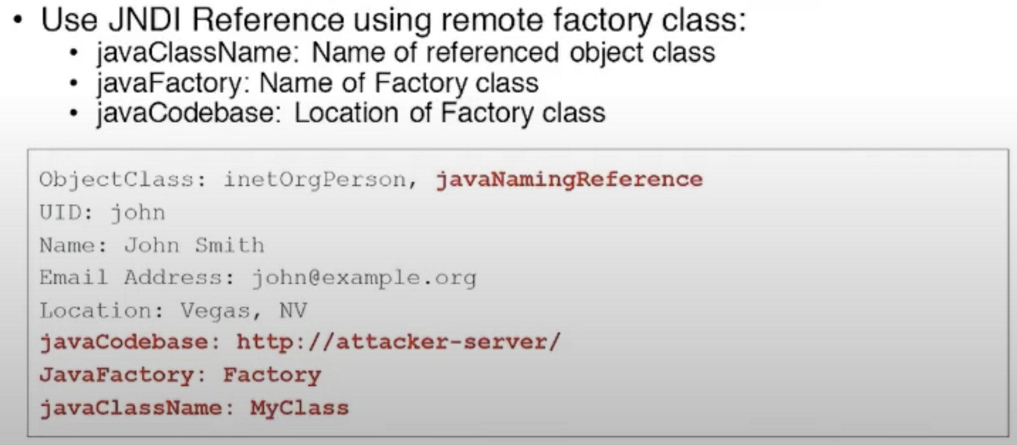 - https://www.blackhat.com/docs/us-16/materials/us-16-Munoz-A-Journey-From-JNDI-LDAP-Manipulation-To-RCE.pdf