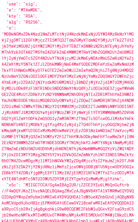 然后您可以使用例如 jwt.io 来创建新的 JWT,使用 创建的公钥和私钥,并将参数 jku 指向创建的证书。 为了创建有效的 jku 证书,您可以下载原始证书并更改所需的参数。