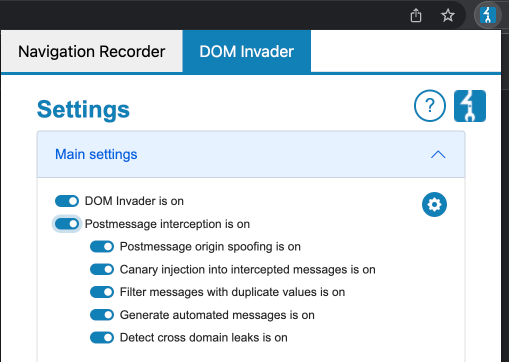 - https://portswigger.net/burp/documentation/desktop/tools/dom-invader/enabling