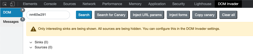 在前面的图像中,可以看到可以开启DOM污染扫描。一旦完成,DOM Invader将开始搜索DOM污染漏洞。