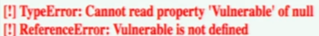 找出用户直接提供的内容是否试图被执行的一个好方法是修改参数值(例如改为 'Vulnerable'),并在控制台中查找错误,例如: