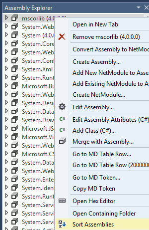 在Assembly Explorer中右键点击任何模块并点击Sort Assemblies:
