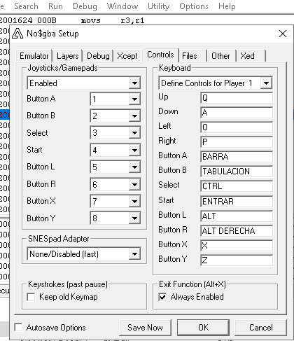 在 no$gba 中,在 Options --> Emulation Setup --> Controls** ** 你可以看到如何按下 Game Boy Advance 按钮