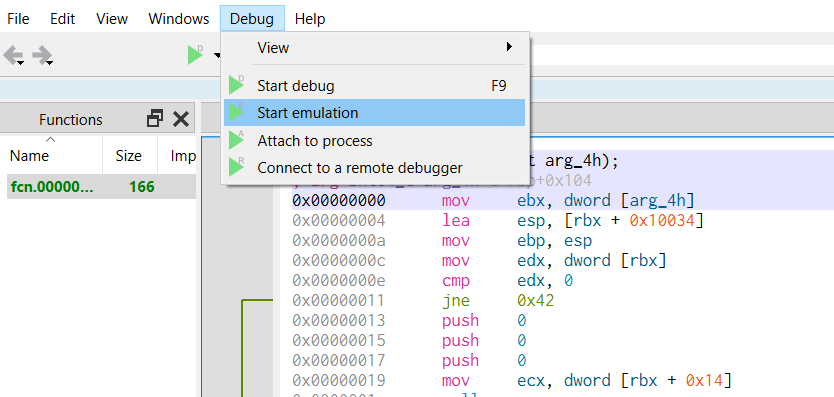 Debugging shellcode using Cutter