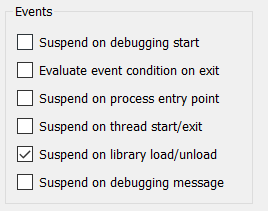- 选择“Suspend on library load/unload”