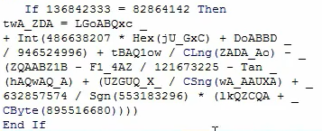 很常见会发现从未使用的垃圾代码,以使宏的逆向工程更加困难。