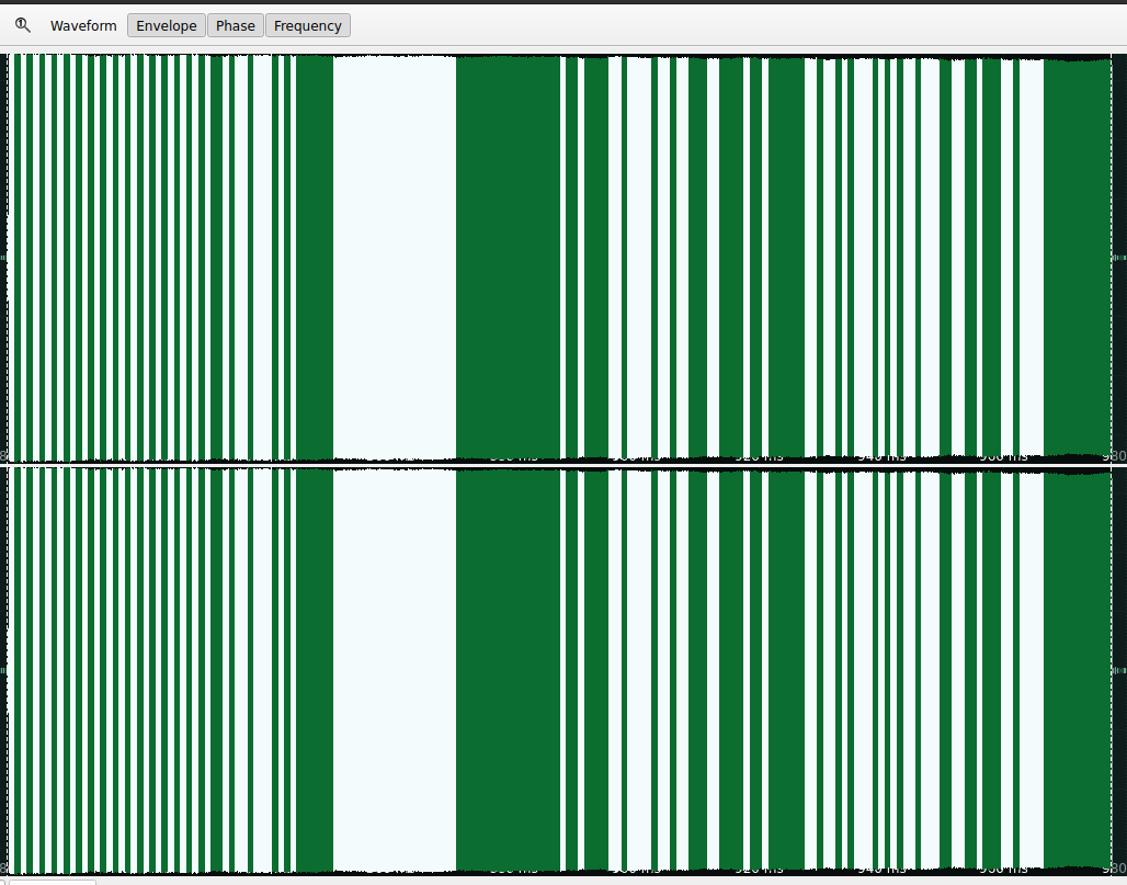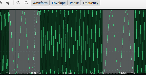 在前面的图像中,您可以很好地观察到使用了2个频率,但如果您观察波形,您可能无法正确识别这2个不同的频率: