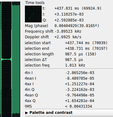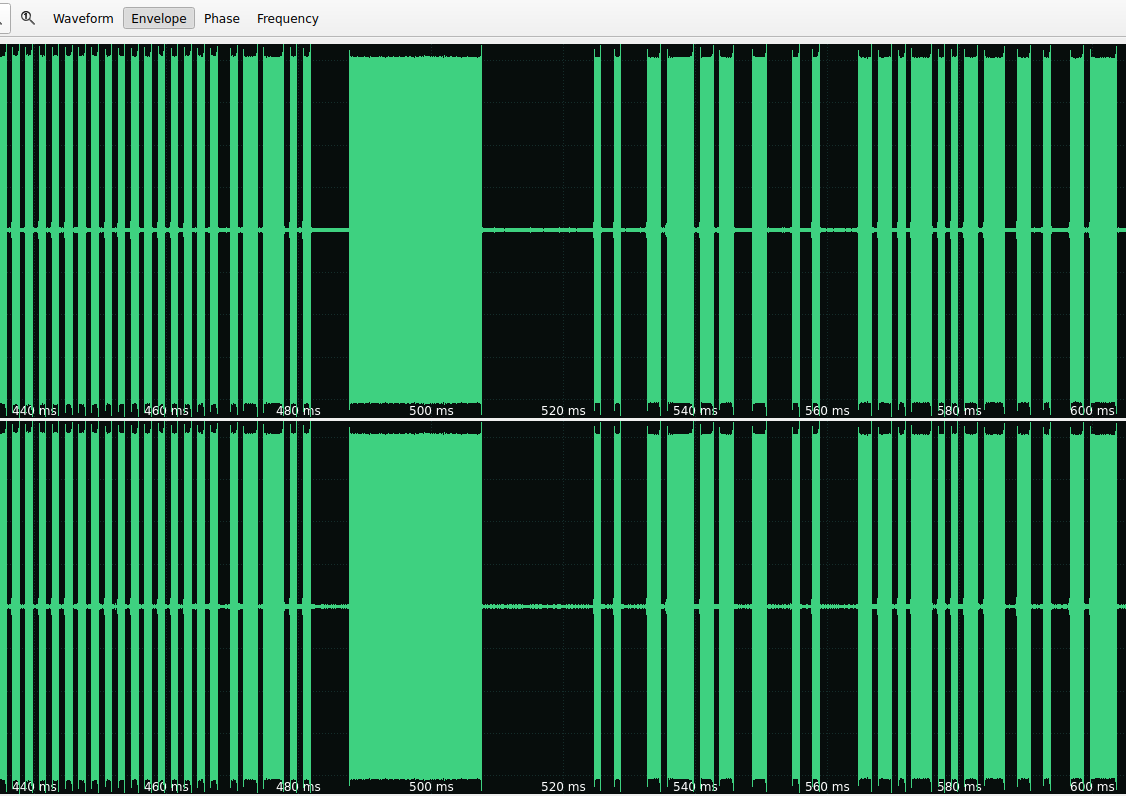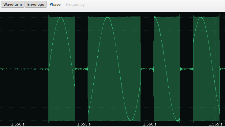 使用SigDigger 检查AM信息,仅查看包络,您可以看到不同的清晰幅度水平。所用信号以AM发送信息脉冲,这就是一个脉冲的样子: