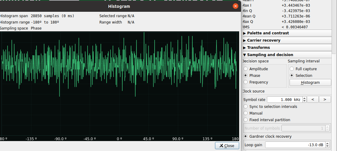 如果信号每个符号有超过1个比特(例如2),SigDigger无法知道哪个符号是00、01、10、11,因此它将使用不同的灰度来表示每个(如果您复制比特,它将使用0到3的数字,您需要处理它们)。