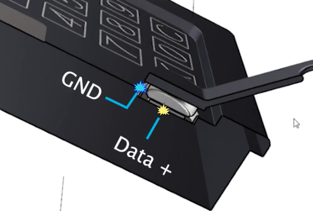 当钥匙接触到读卡器时,接触点接触,钥匙被供电以 传输 其 ID。有时钥匙 不会立即被读取,因为 对讲机的接触 PSD 较大。因此,钥匙和读卡器的外部轮廓无法接触。如果是这种情况,您需要将钥匙按在读卡器的一个墙面上。