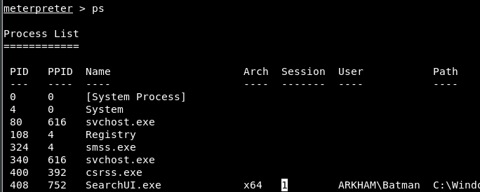 您可以使用 meterpreter 会话获取。迁移到 Session 值等于 1 的 进程: