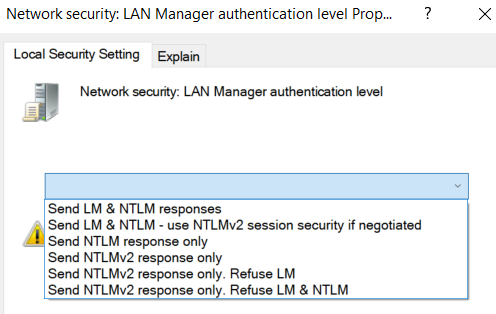 1 - Send LM & NTLM responses, use NTLMv2 session security if negotiated